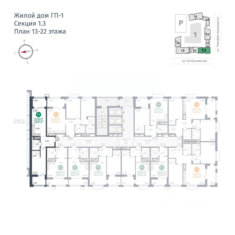Предлагаем 1 - комнатную квартиру в доме ГП-1 общей площадью: 43,48 кв.м., с типом планировки: Кухня-ниша.