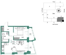 Продается 2комнатная квартира на 13 этаже от застройщика Страна Девелопмент. Площадь квартиры 45,48 кв. м.