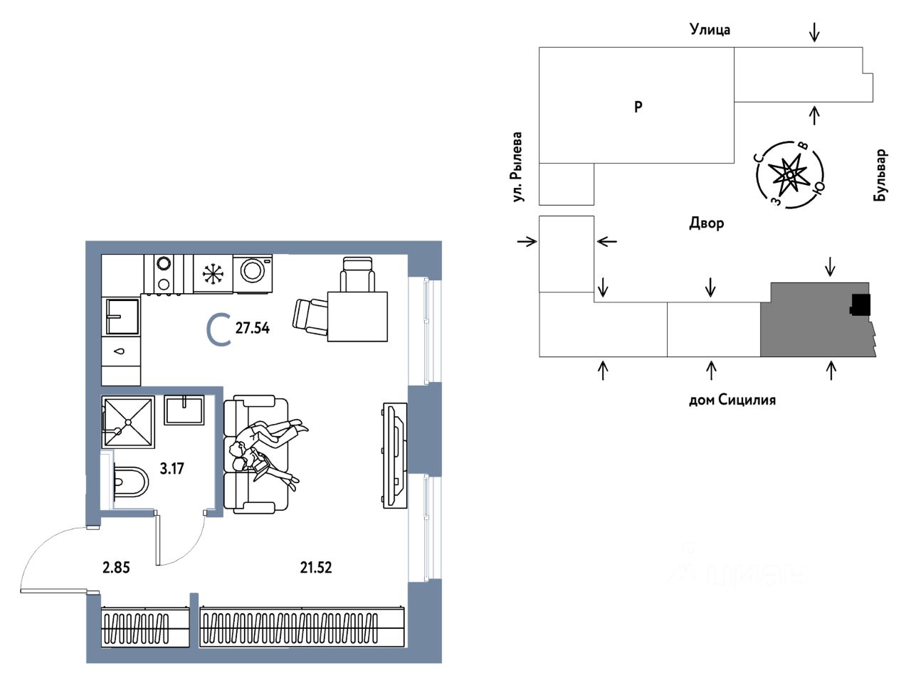 Продается 1комнатная квартира на 17 этаже от застройщика Страна Девелопмент. Площадь квартиры 27,54 кв. м.