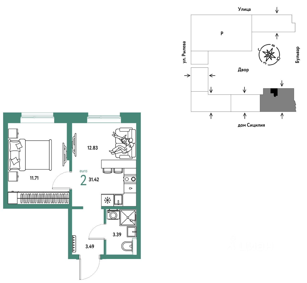 Продается 2комнатная квартира на 23 этаже от застройщика Страна Девелопмент. Площадь квартиры 31,42 кв. м.