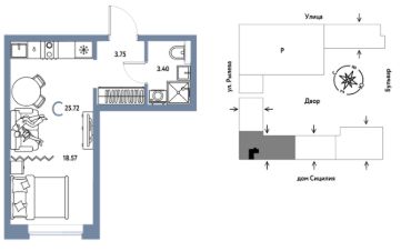 Продается 1комнатная квартира на 16 этаже от застройщика Страна Девелопмент. Площадь квартиры 25,72 кв. м.
