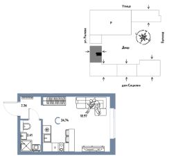 Продается 1комнатная квартира на 13 этаже от застройщика Страна Девелопмент. Площадь квартиры 24,74 кв. м.