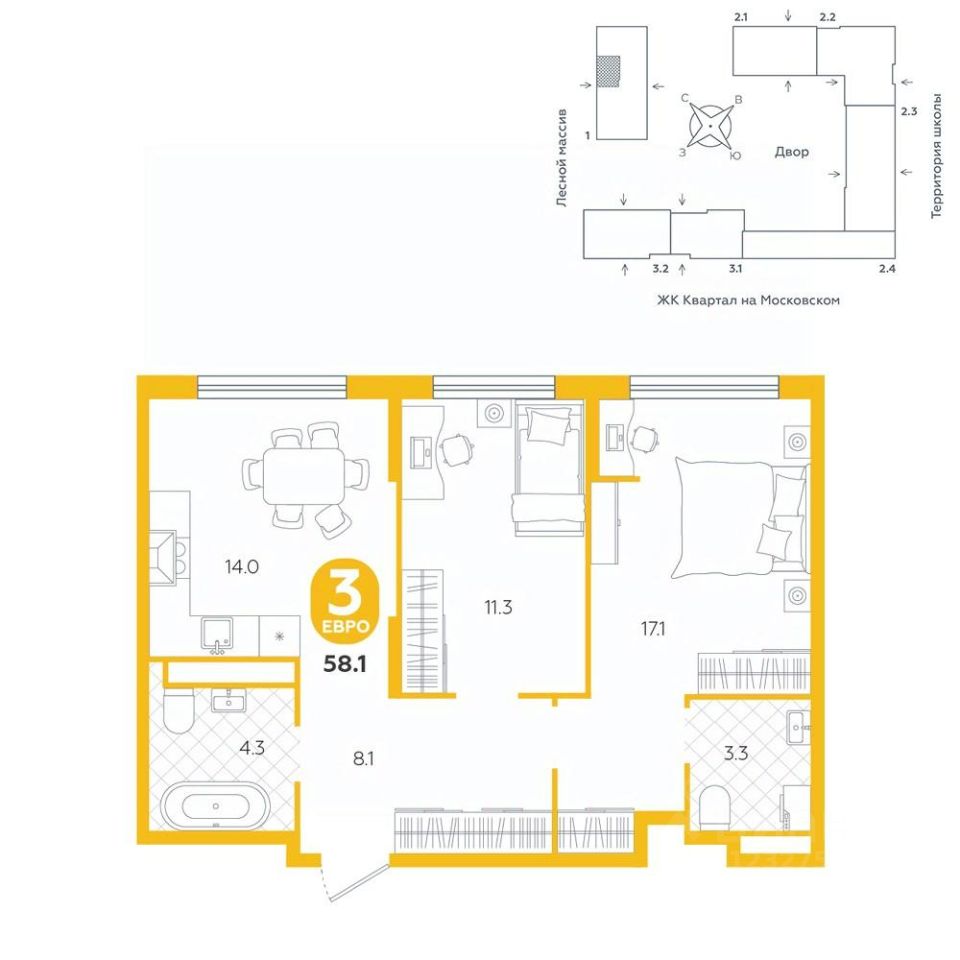 Квартира находится в Квартале мечтателей "Астро". Жилой комплекс от "Паритет Девелопмент" строится в Тюменской слободе на улице Сергея Джанбровского 19 к1.