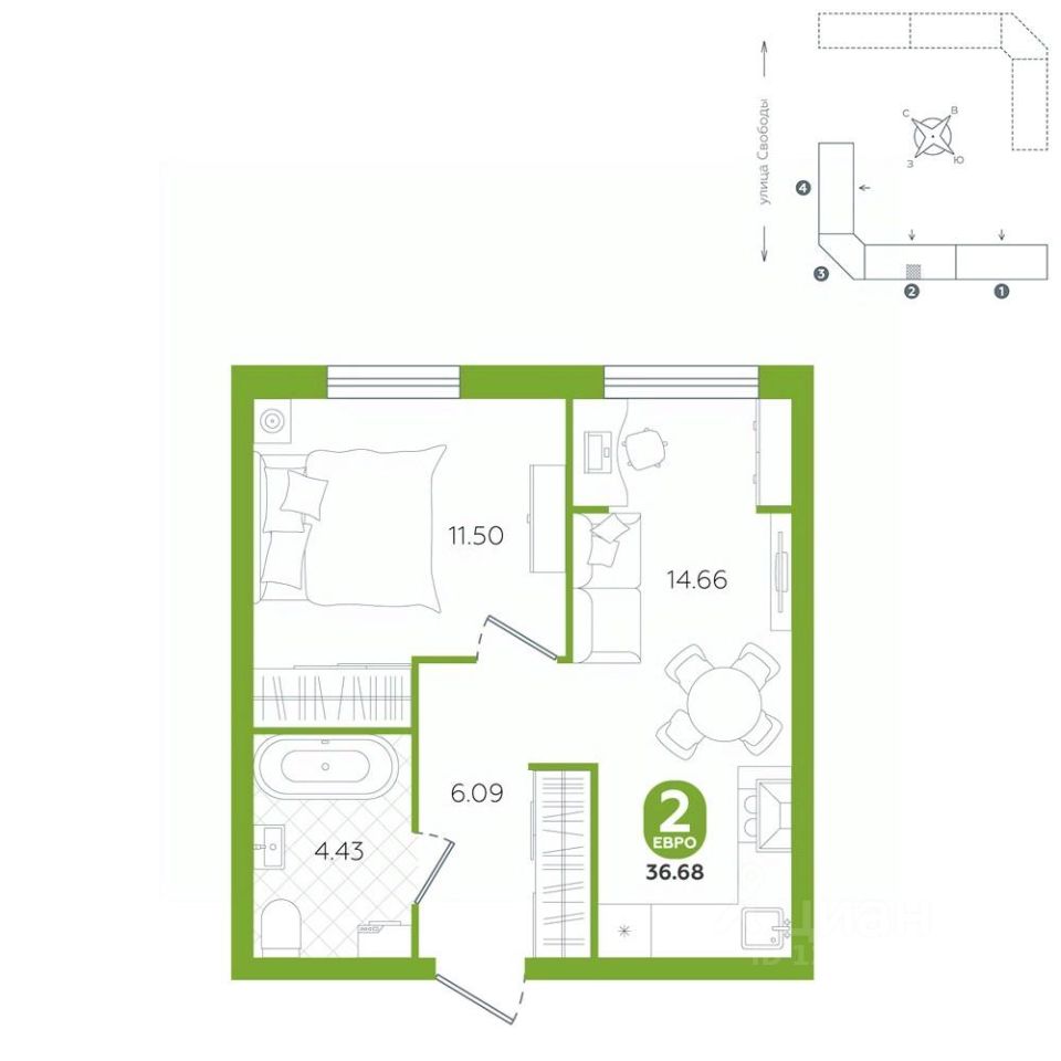 Дома расположены по адресу: Тюменская область, г. Ялуторовск, ул. Свободы, 240 и 242. Дома ГП-1 и ГП-2 - сданы. Срок сдачи ГП-3, ГП-4 - 3 квартал 2025-2026 гг.