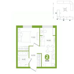 площадь квартиры - 36,68 кв.м