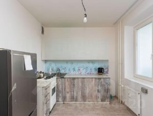 Продаётся двухкомнатная квартира в новом доме в микрорайоне Патрушева. В квартире простой ремонт, на полу линолеум, а в ванной комнате — плитка. В квартире есть диван, кресла, кухонный гарнитур и плита.