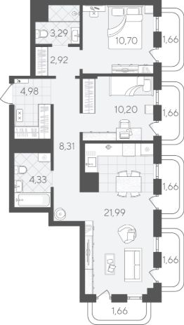 Продуманная геометрия комнат позволит легко зонировать пространство и подобрать необходимую мебель.