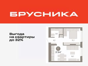 Квартира с кухней-гостиной и одной спальней в Октябрьском на Туре. Особенности планировки: предчистовая отделка.