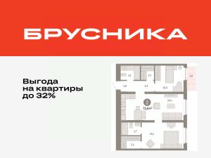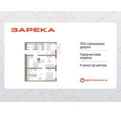 Квартира с кухней-гостиной и двумя спальнями в жилом районе "Зарека". Особенности планировки: гардеробная, разнесённые спальни, предчистовая отделка, мастер-спальня, балкон.