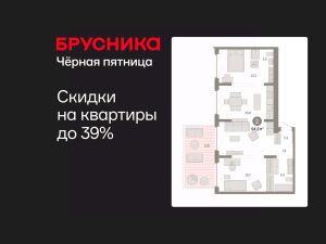 Квартира с кухней-гостиной и двумя спальнями в жилом районе "Зарека". Особенности планировки: без отделки, свободная планировка, разнесённые спальни, мастер-спальня, терраса.