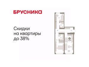 Двухкомнатная квартира с предчистовой отделкой в ЖК "Республики 205" на 2 этаже. Общая площадь: 72.35 кв.м. Высота потолков 2.7 м.