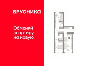 2-комн. квартира с предчистовой отделкой в ЖК "Республики 205" на 2 этаже. Общая площадь: 72.35 кв.м. Высота потолков 2.7 м.