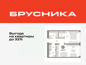 1-комн. квартира от застройщика с предчистовой отделкой в ЖК "Республики 205" на 6 этаже. Общая площадь: 48.07 кв.м., жилая: 11.7 кв.м., площадь просторной кухни-гостиной: 18.6 кв.м. Все окна выходят на одну сторону. В квартире один совмещенный санузел. Высота потолков 2.7 м.