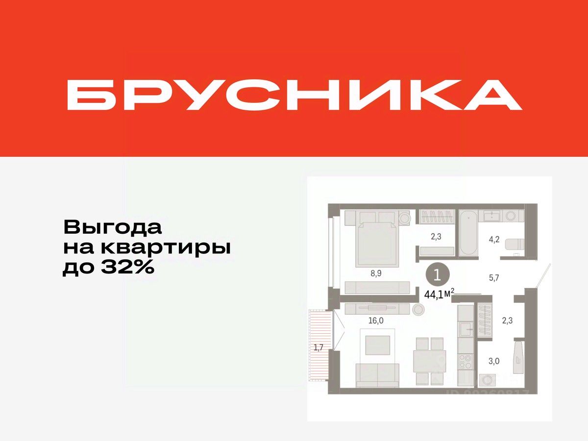 1-комн. квартира с предчистовой отделкой в ЖК "Республики 205" на 9 этаже. Общая площадь: 44.1 кв.м., жилая: 8.9 кв.м., площадь просторной кухни-гостиной: 16 кв.м. Все окна выходят на одну сторону. В квартире один балкон, один совмещенный санузел. Высота потолков 2.7 м.