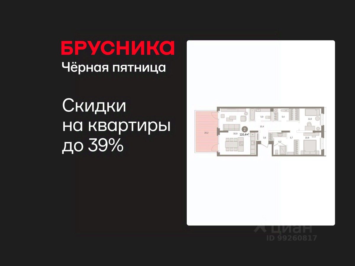 Продается двухкомнатная квартира с предчистовой отделкой в Кварталы "На Минской" на 2 этаже. Общая площадь: 110.38 кв.м. Высота потолков 2.7 м.