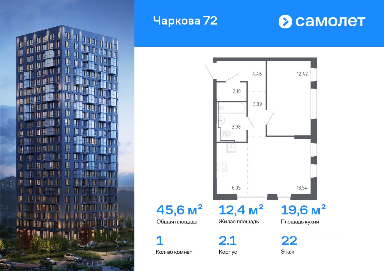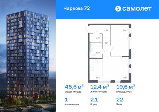 Строим кварталы для жизни с заботой о будущем. Предлагается 1-комнатная квартира комфорт-класса 45,64 кв.м в корпусе 2.1 на 22 этаже, в ЖК "Чаркова 72"