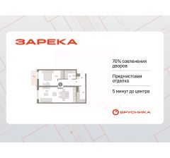 Квартира с кухней-гостиной и одной спальней в жилом районе "Зарека". Особенности планировки: предчистовая отделка, постирочная, балкон.