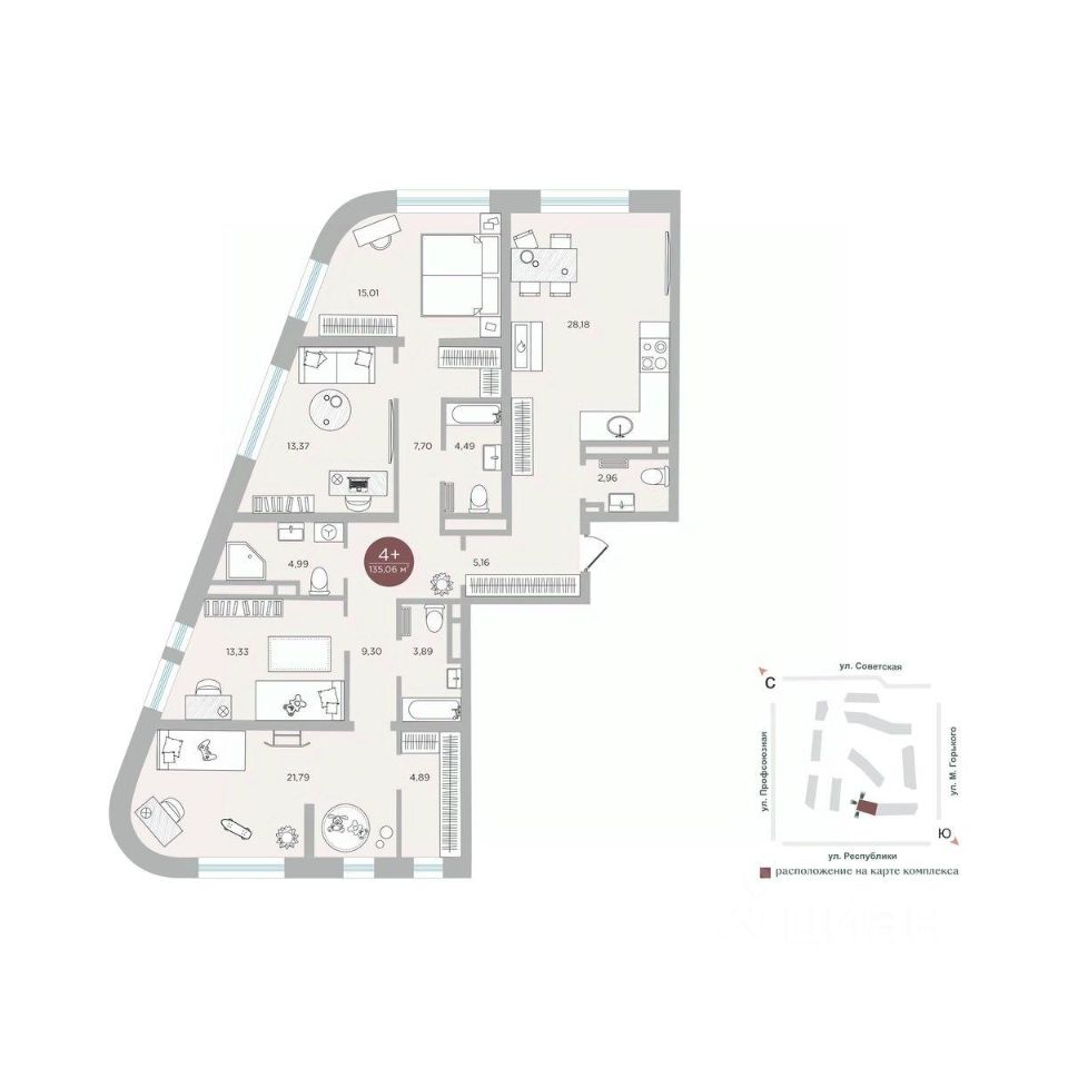 Территория квартала - это квадрат улиц Профсоюзная-Республики-Советская-М.Горького. Застройщиком спроектированы квартиры от студий до четырехкомнатных, общей площадью от 29.6 до 146.3 кв. м. Дома сдаются в предчистовой отделке.