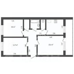 Санузел разделенный, также есть отдельная кладовая, в которой можно расположить стиральную и сушильную машину.