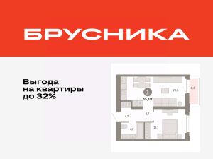 Квартира с кухней-гостиной и одной спальней в жилом районе "Зарека". Особенности планировки: предчистовая отделка, балкон.