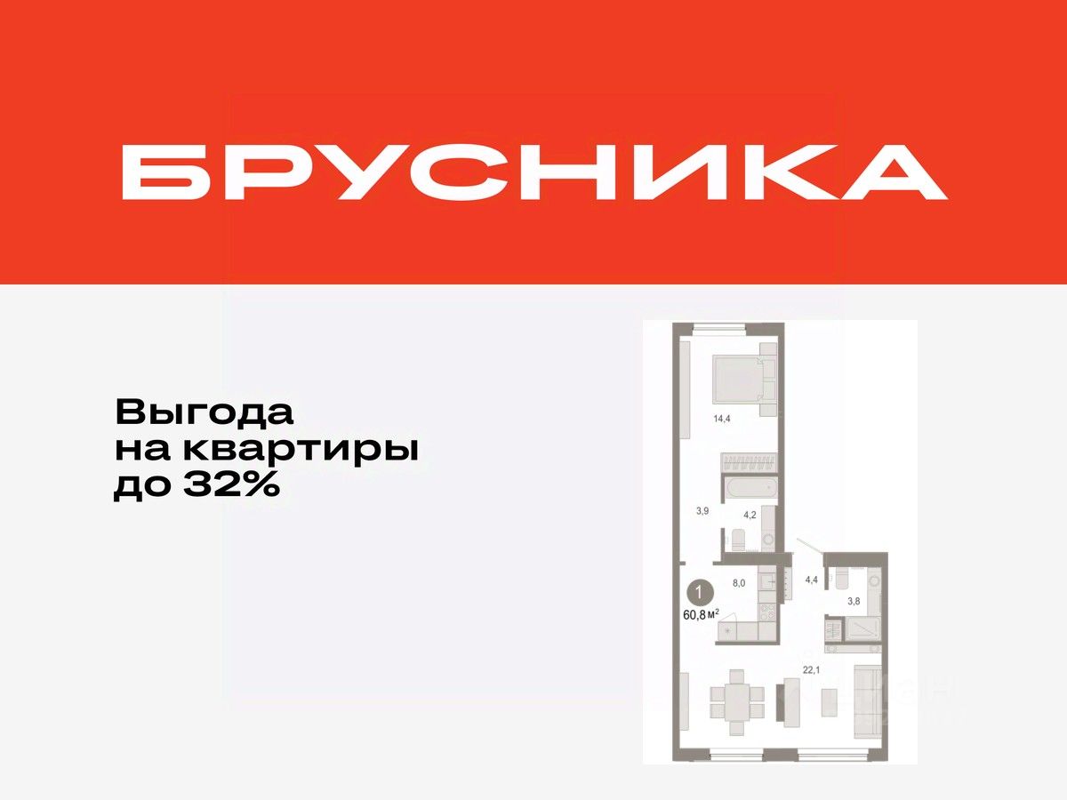 Квартира с кухней-гостиной и одной спальней в Октябрьском на Туре. Особенности планировки: вид во двор, предчистовая отделка, мастер-спальня.