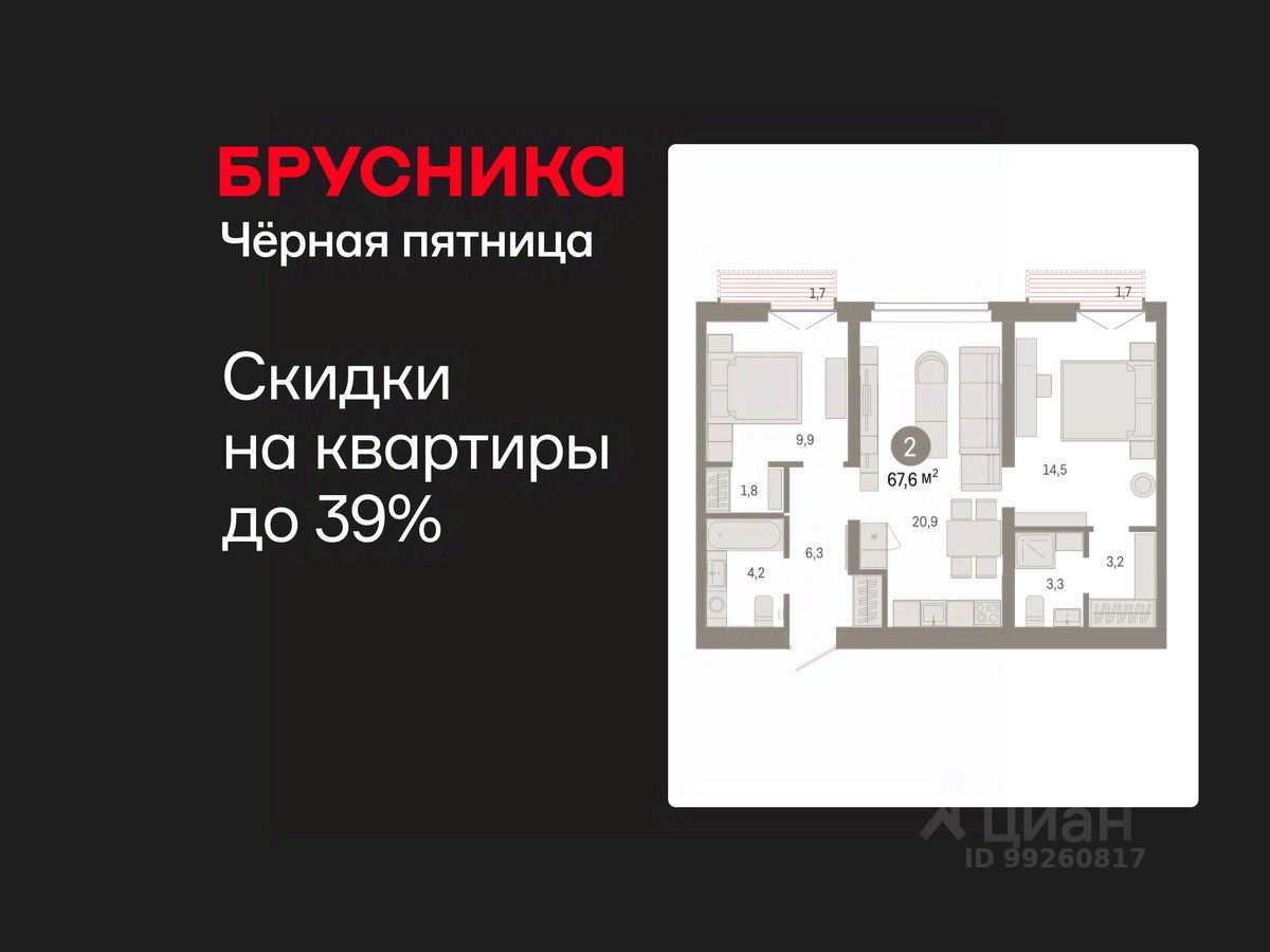 Продается 2-комн. квартира от застройщика с предчистовой отделкой в ЖК "Республики 205" на 9 этаже. Общая площадь: 67.56 кв.м. Высота потолков 2.7 м.