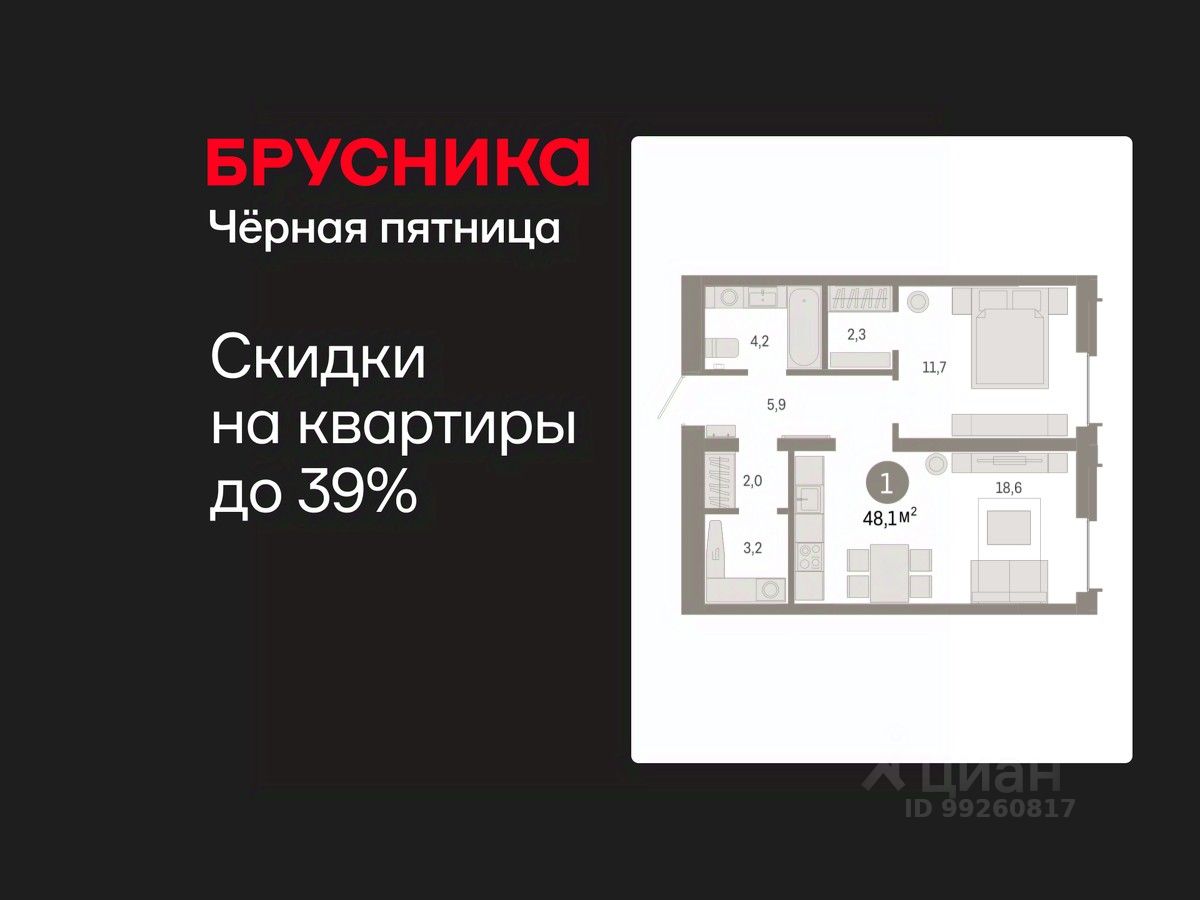 Продается 1-комн. квартира от застройщика с предчистовой отделкой в ЖК "Республики 205" на 13 этаже. Общая площадь: 48.06 кв.м., жилая: 11.7 кв.м., площадь просторной кухни-гостиной: 18.6 кв.м. Все окна выходят на одну сторону. В квартире один совмещенный санузел. Высота потолков 2.7 м.