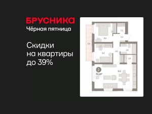 Просторная 2-комн. квартира с предчистовой отделкой в ЖК "Республики 205" на 4 этаже. Общая площадь: 72.07 кв.м., жилая: 19.1 кв.м., площадь просторной кухни-гостиной: 28.6 кв.м. Угловая квартира, очень светлая, естественная вентиляция при открытии окон. В квартире один балкон, один совмещенный санузел. Высота потолков 2.7 м.