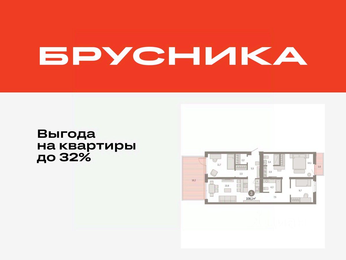 Просторная 3-комн. квартира с предчистовой отделкой в ЖК "Республики 205" на 2 этаже. Общая площадь: 108.07 кв.м. Высота потолков 2.7 м.