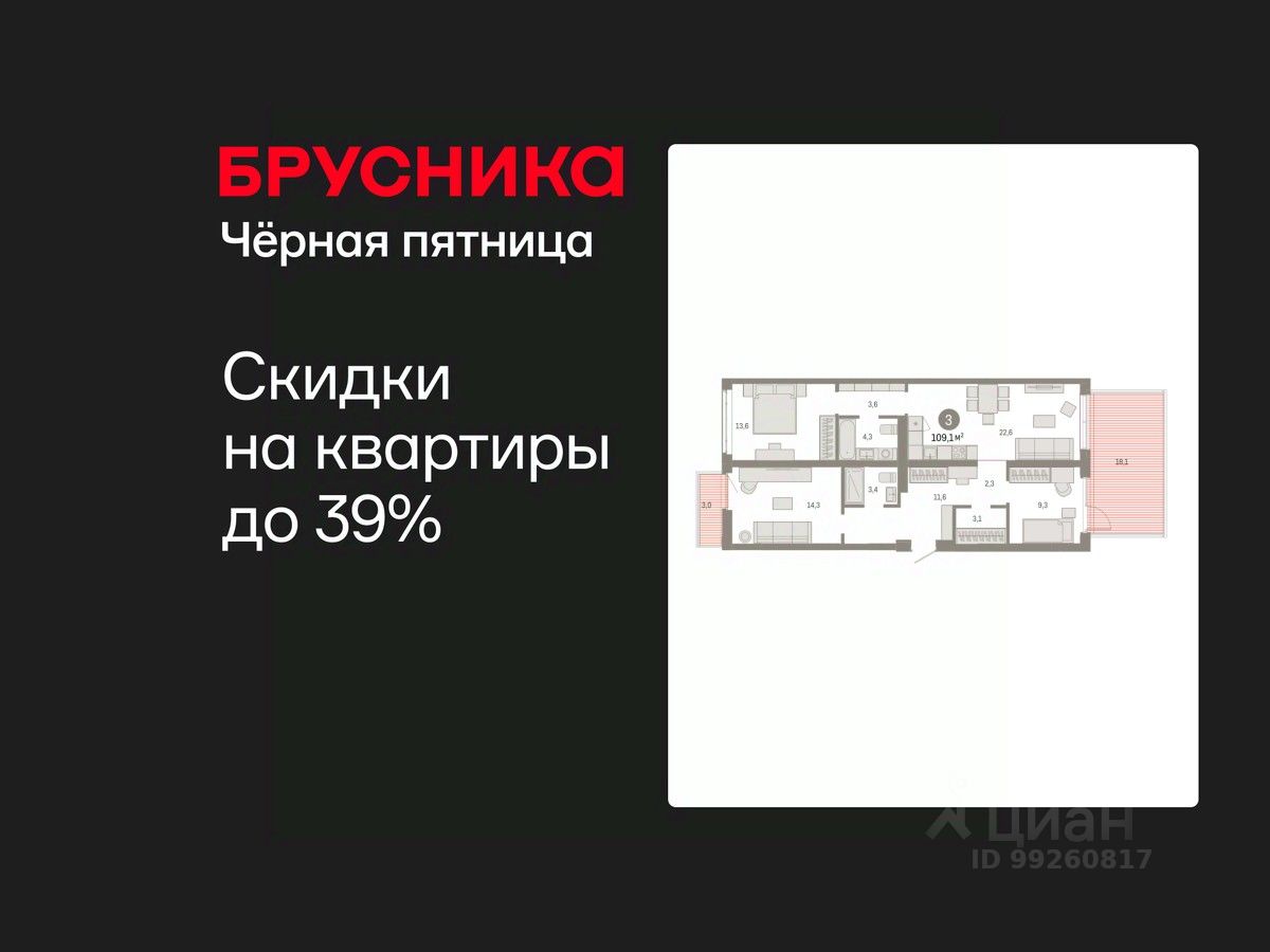 Продается трехкомнатная квартира с предчистовой отделкой в ЖК "Республики 205" на 2 этаже. Общая площадь: 109.05 кв.м. Высота потолков 2.7 м.