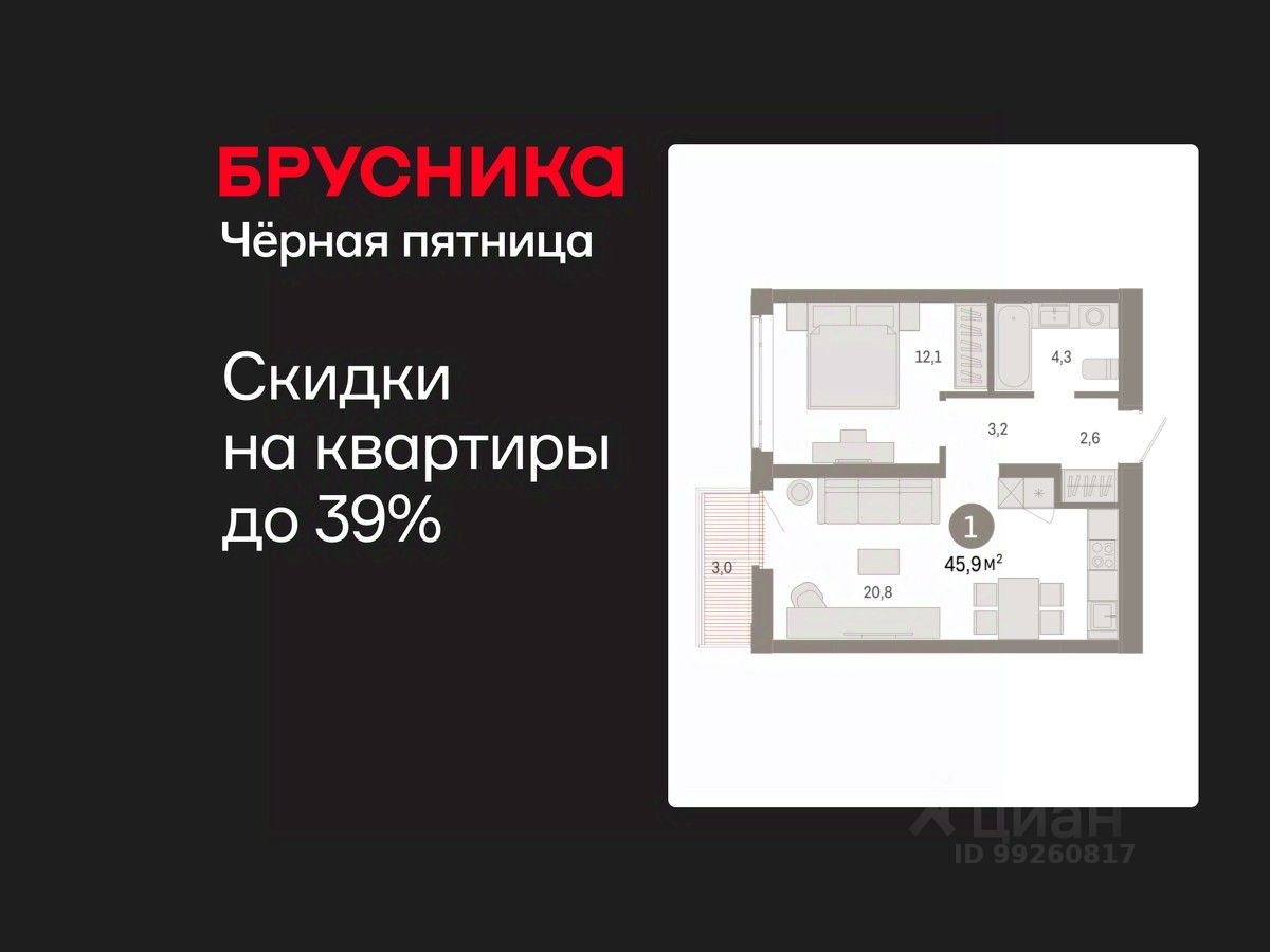 Просторная однокомнатная квартира с предчистовой отделкой в ЖК "Республики 205" на 7 этаже. Общая площадь: 45.89 кв.м., жилая: 12.1 кв.м., площадь просторной кухни-гостиной: 20.8 кв.м. Все окна выходят на одну сторону. В квартире один балкон, один совмещенный санузел. Высота потолков 2.7 м.