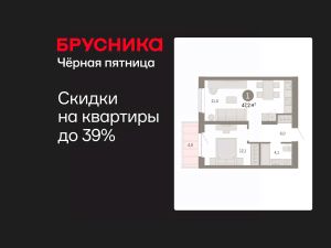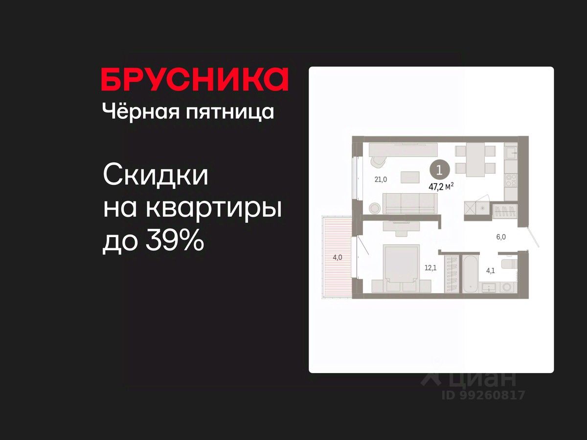 Квартира с кухней-гостиной и одной спальней в кварталах "На Минской". Особенности планировки: предчистовая отделка, балкон.