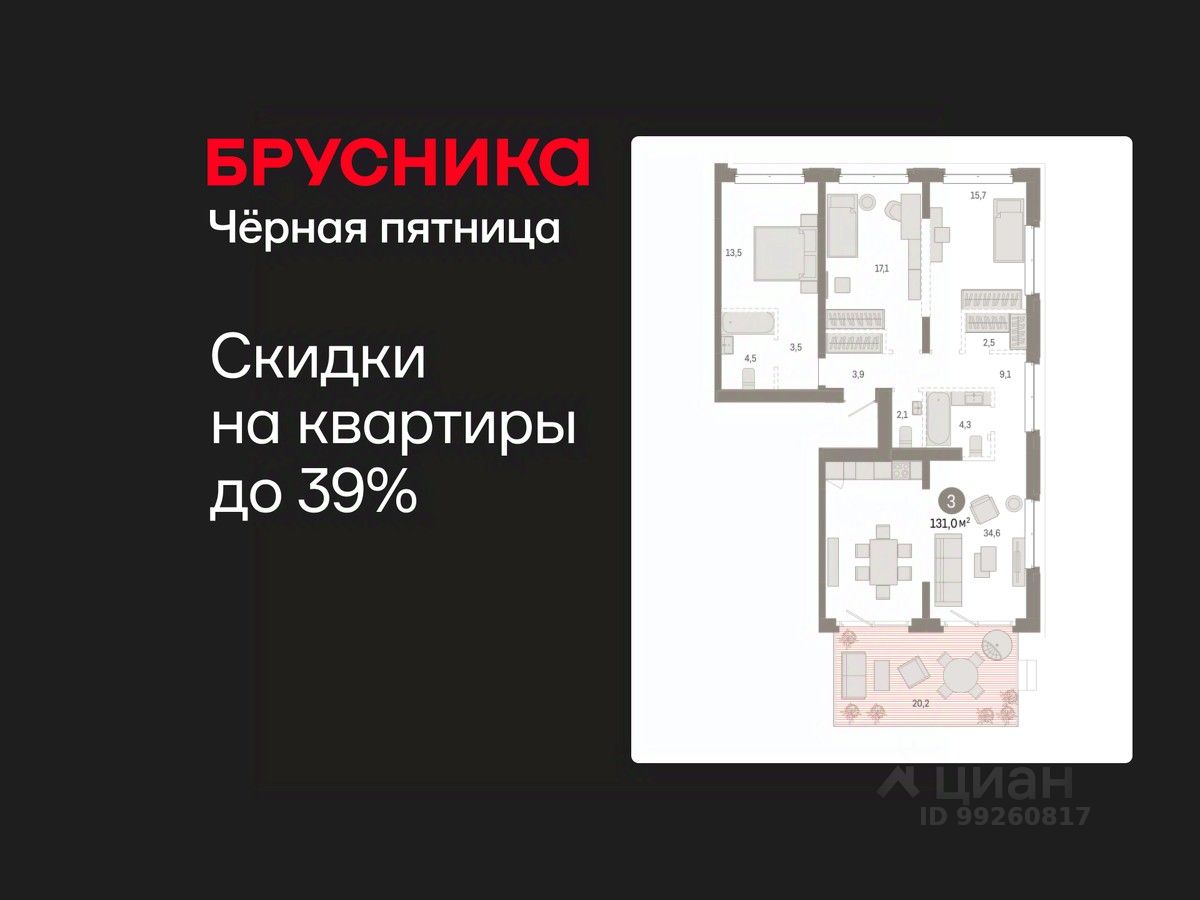3-комн. квартира от застройщика с предчистовой отделкой в Кварталы "На Минской" на 2 этаже. Общая площадь: 130.97 кв.м. Высота потолков 2.7 м.