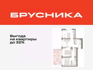 Двухкомнатная квартира от застройщика с предчистовой отделкой в Кварталы "На Минской" на 2 этаже. Общая площадь: 94.51 кв.м. Высота потолков 2.7 м.