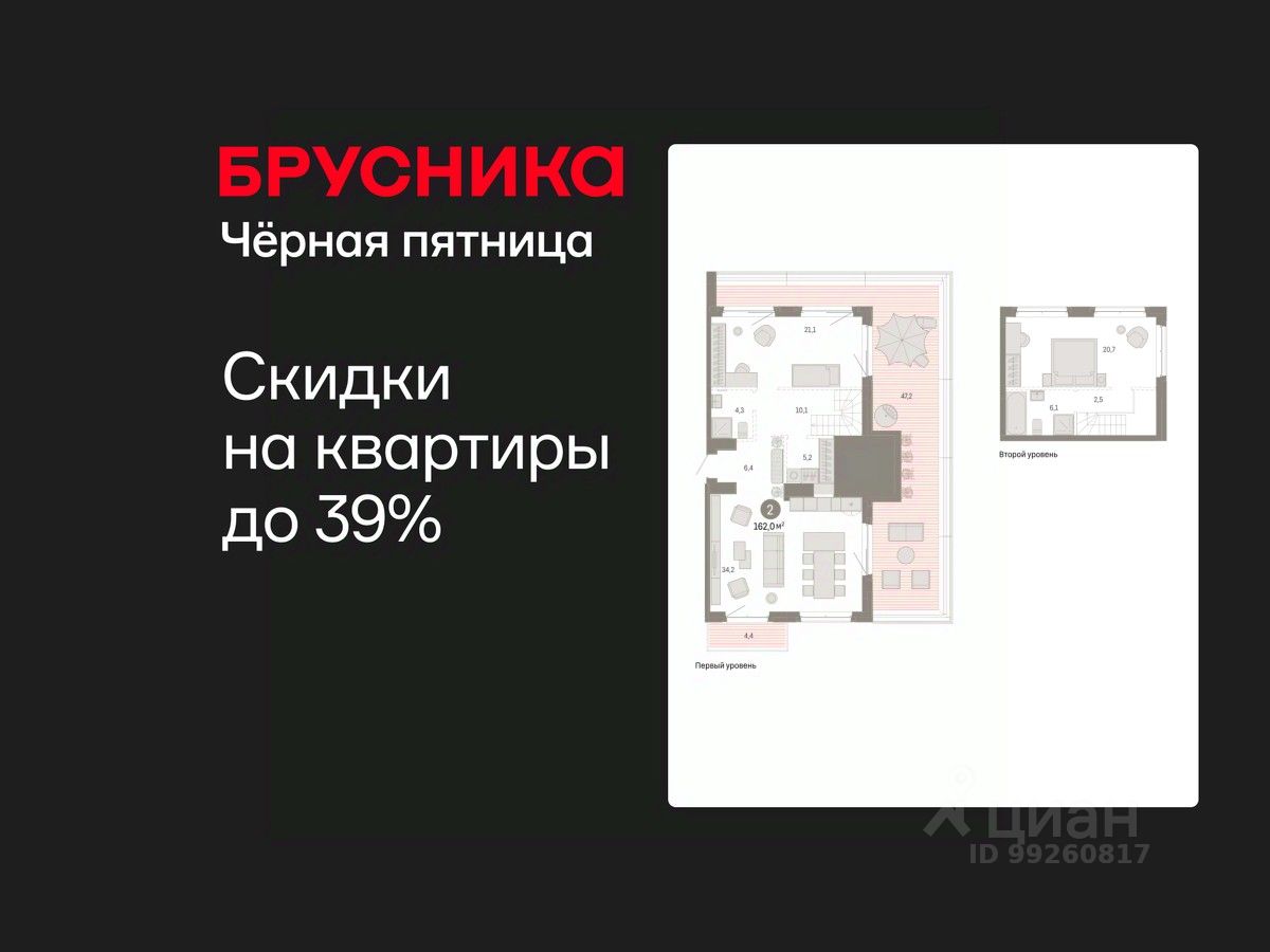 Двухуровневая квартира с кухней-гостиной и двумя спальнями в кварталах "На Минской". Особенности планировки: гардеробная, двухуровневая, вид во двор, разнесённые спальни, предчистовая отделка, балкон, терраса на крыше.