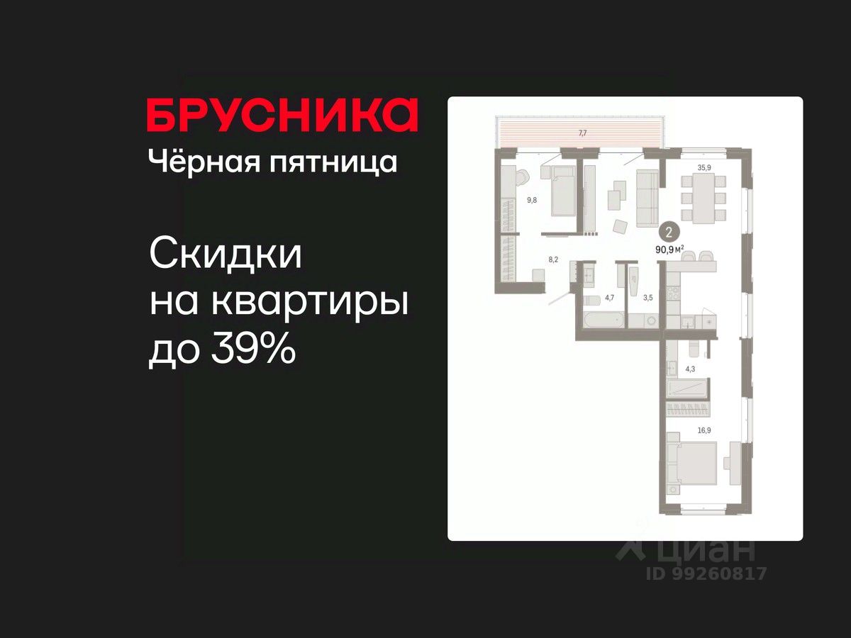 Продается двухкомнатная квартира с предчистовой отделкой в Кварталы "На Минской" на 6 этаже. Общая площадь: 90.9 кв.м., жилая: 26.7 кв.м., площадь просторной кухни-гостиной: 35.9 кв.м. Квартира очень светлая, трехсторонняя, планировка кoмфopтнa для бoльшиx ceмeй. В квартире один балкон, два совмещенных санузла. Высота потолков 2.7 м.