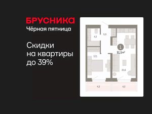 Квартира с кухней-гостиной и одной спальней в кварталах "На Минской". Особенности планировки: предчистовая отделка, балкон.