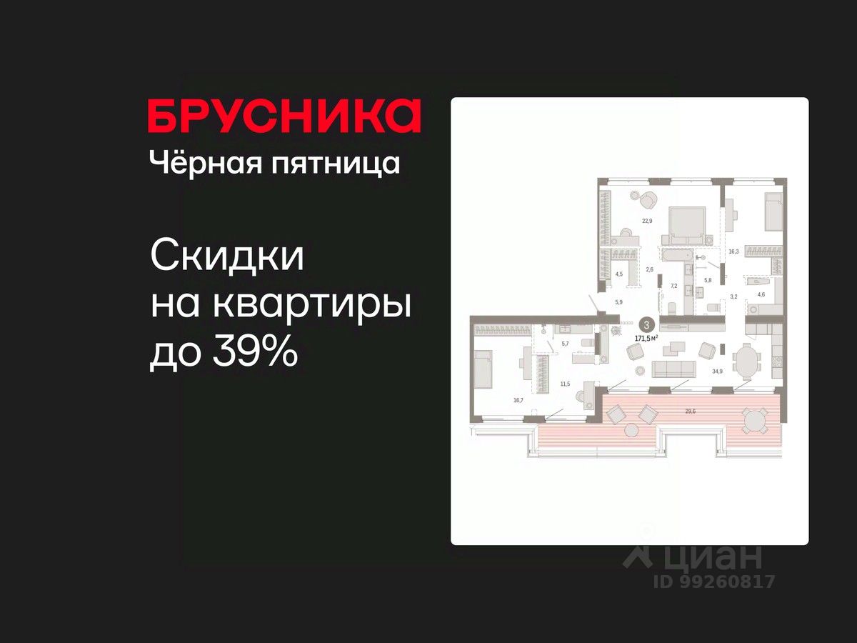 3-комн. квартира с предчистовой отделкой в Кварталы "На Минской" на 7 этаже. Общая площадь: 171.45 кв.м. Высота потолков 2.7 м.