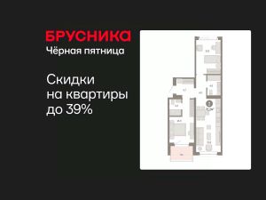 Квартира с кухней-гостиной и двумя спальнями в кварталах "На Минской". Особенности планировки: окна на две стороны, окна в пол, вид во двор, панорамное остекление, лоджия, разнесённые спальни, предчистовая отделка, мастер-спальня.