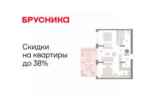 Просторная 1-комн. квартира с предчистовой отделкой в Кварталы "На Минской" на 2 этаже. Общая площадь: 90.29 кв.м. Высота потолков 2.7 м.