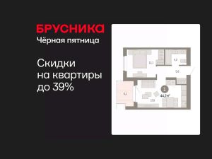 1-комн. квартира от застройщика с предчистовой отделкой в Кварталы "На Минской" на 4 этаже. Общая площадь: 44.2 кв.м., жилая: 12.1 кв.м., площадь просторной кухни-гостиной: 17 кв.м. Все окна выходят на одну сторону. В квартире одна лоджия, один совмещенный санузел. Высота потолков 2.7 м.