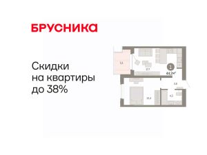 1-комн. квартира от застройщика с предчистовой отделкой в Кварталы "На Минской" на 5 этаже. Общая площадь: 44.22 кв.м., жилая: 13.4 кв.м., площадь просторной кухни-гостиной: 17.7 кв.м. Все окна выходят на одну сторону. В квартире одна лоджия, один совмещенный санузел. Высота потолков 2.7 м.