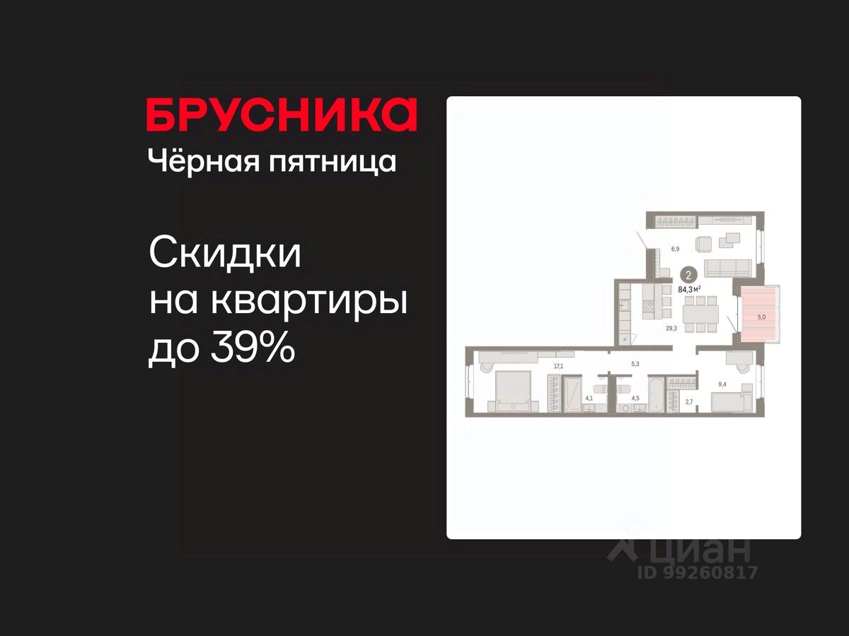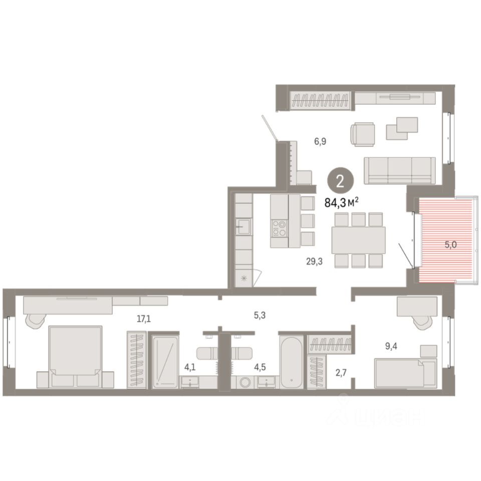 2-комн. квартира от застройщика с предчистовой отделкой в Кварталы "На Минской" на 3 этаже. Общая площадь: 84.27 кв.м. Высота потолков 2.7 м.