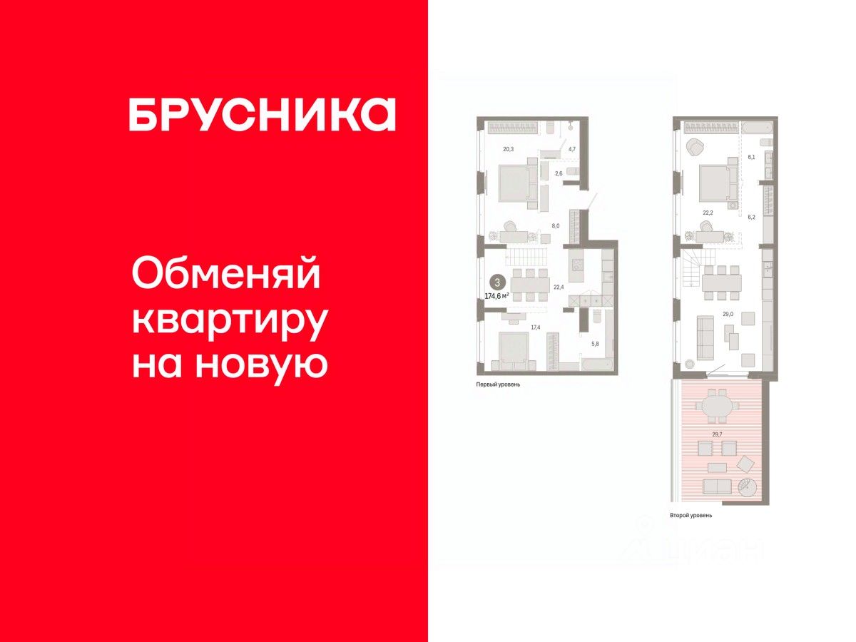 Двухуровневая квартира с кухней-гостиной и тремя спальнями в кварталах "На Минской". Особенности планировки: вид во двор, гардеробная, двухуровневая, мастер-спальня, окна в пол, панорамное остекление, предчистовая отделка, разнесённые спальни, терраса на крыше.