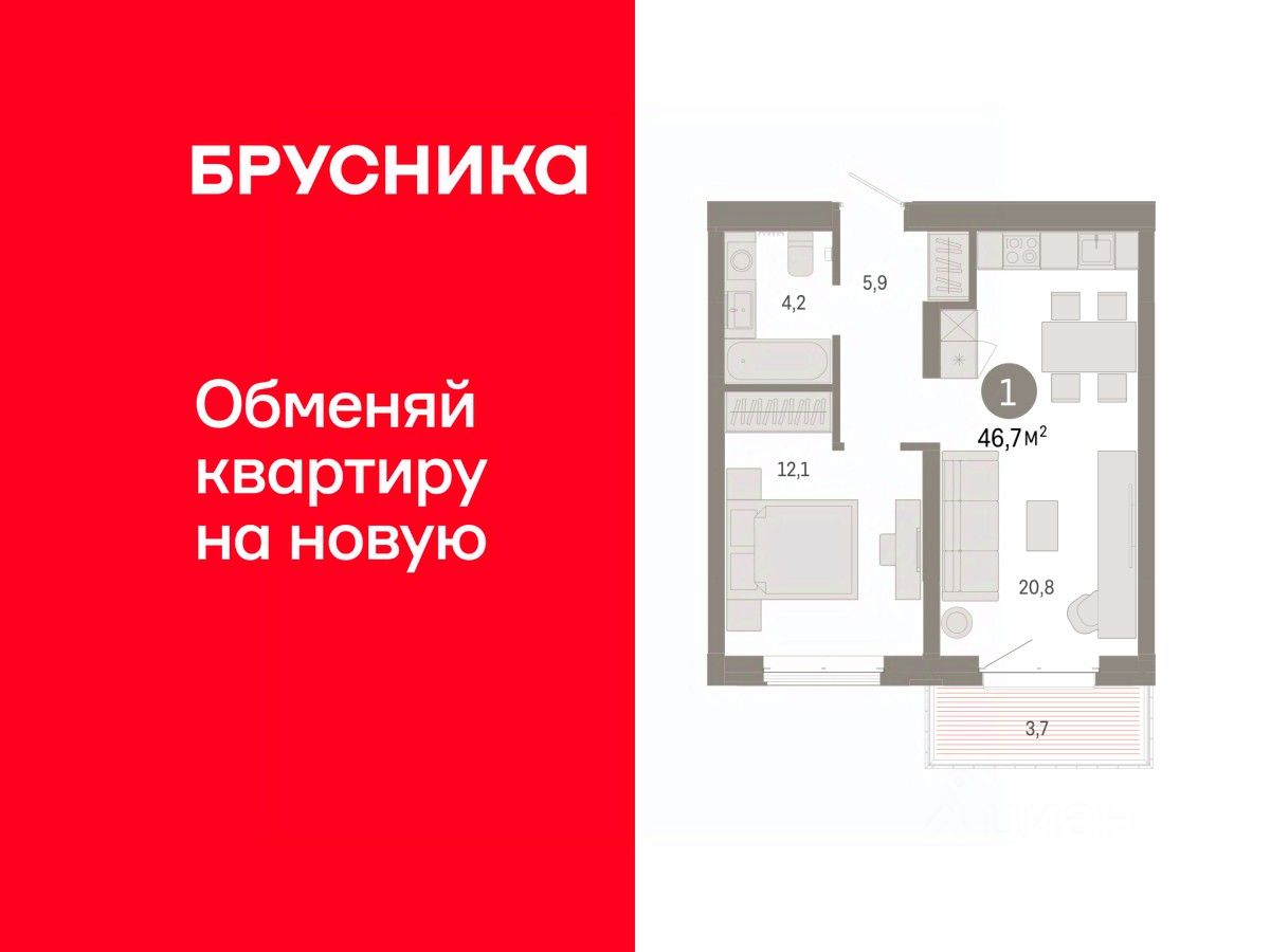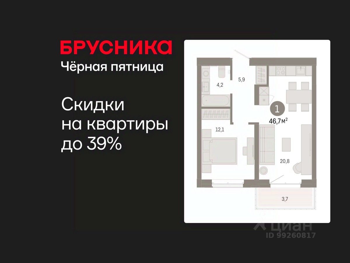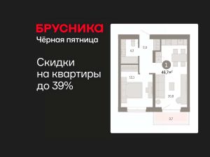 1-комн. квартира от застройщика с предчистовой отделкой в Кварталы "На Минской" на 3 этаже. Общая площадь: 46.7 кв.м., жилая: 12.1 кв.м., площадь просторной кухни-гостиной: 20.8 кв.м. Все окна выходят на одну сторону. В квартире один балкон, один совмещенный санузел. Высота потолков 2.7 м.