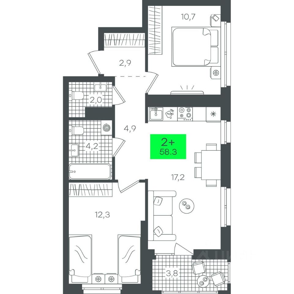 Продаётся 2-комнатная квартира в строящемся доме (3-В6.1 (Малкова, 15)), срок сдачи: III-кв. 2026, общей площадью 58.35 кв.м., на 20 этаже. Компания 4D приступила к строительству нового жилого комплекса "Гранд квартал". Новый ЖК находится в зеленой зоне Калининского района, южнее микрорайона Тюменская слобода.