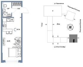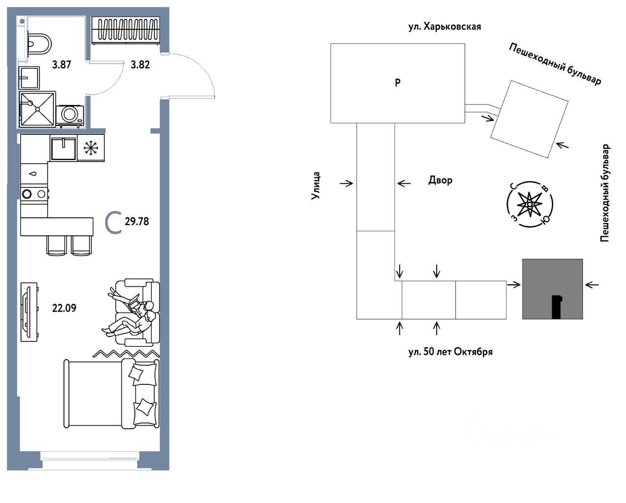 Продается 1комнатная квартира на 6 этаже от застройщика Страна Девелопмент. Площадь квартиры 29,78 кв. м.