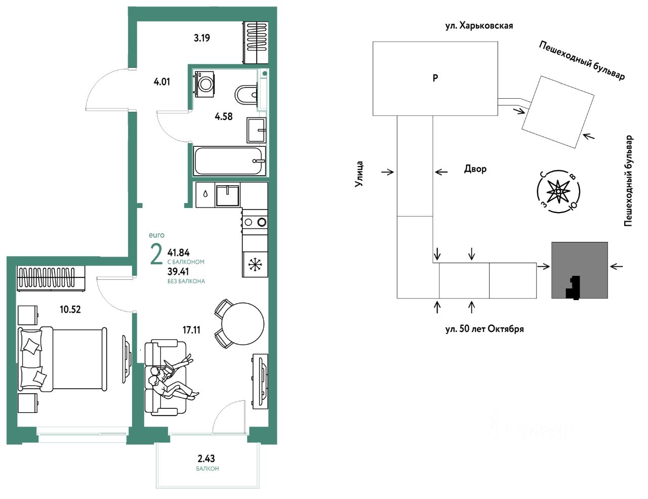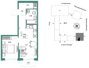 Продается 2комнатная квартира на 8 этаже от застройщика Страна Девелопмент. Площадь квартиры 41,84 кв. м.