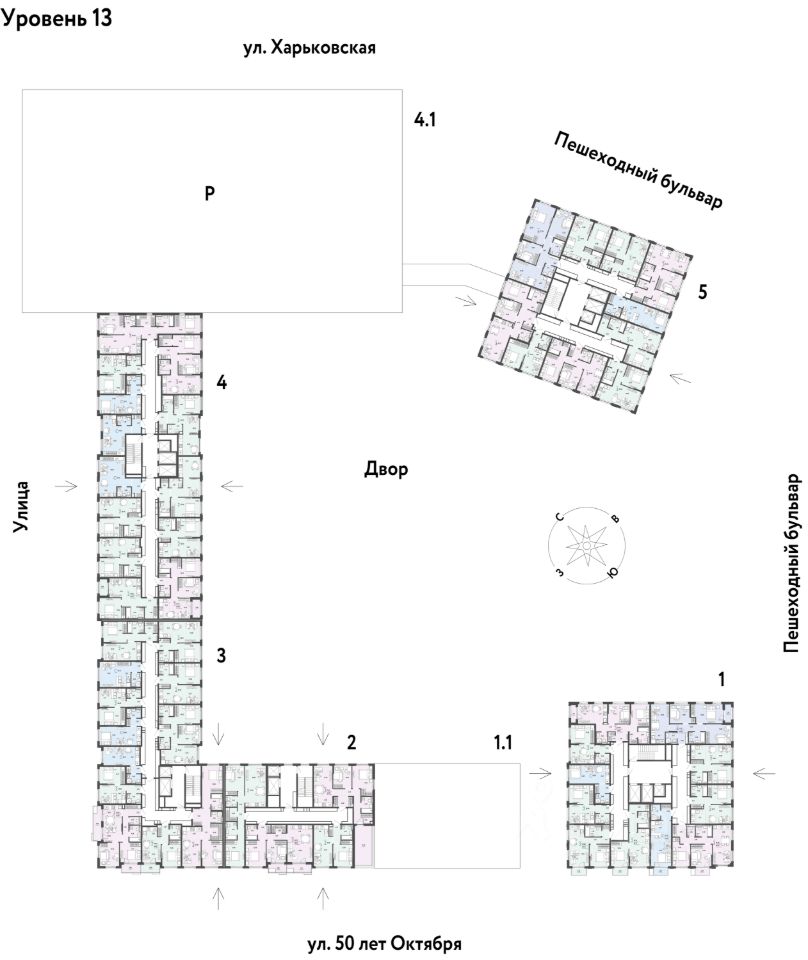 - Основная идея благоустройства дворов — создание камерного, уютного пространства. Периметры кварталов образуют закрытые контуры, внутри которых расположились тихие дворы с местами для отдыха, игровыми и релакс-зонами. Благодаря сквозным парадным во дворе нет машин. Защита от посторонних, служба охраны и видеонаблюдение 24/7 — гарантия безопасности вашей семьи.