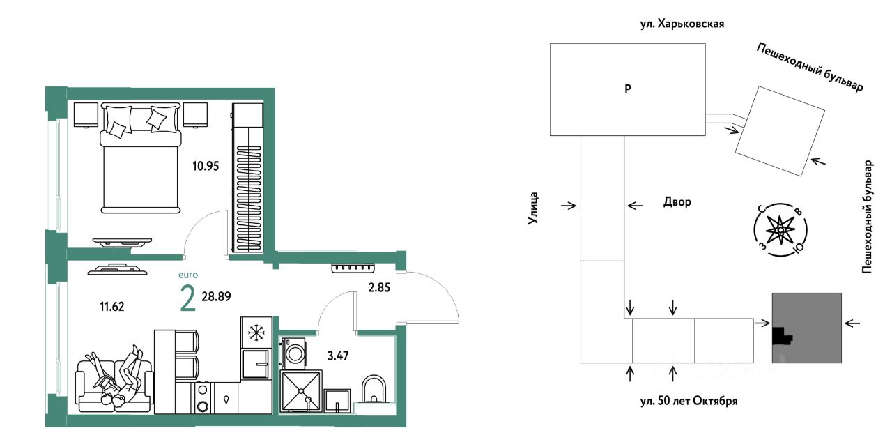 Продается 2комнатная квартира на 14 этаже от застройщика Страна Девелопмент. Площадь квартиры 28,89 кв. м.